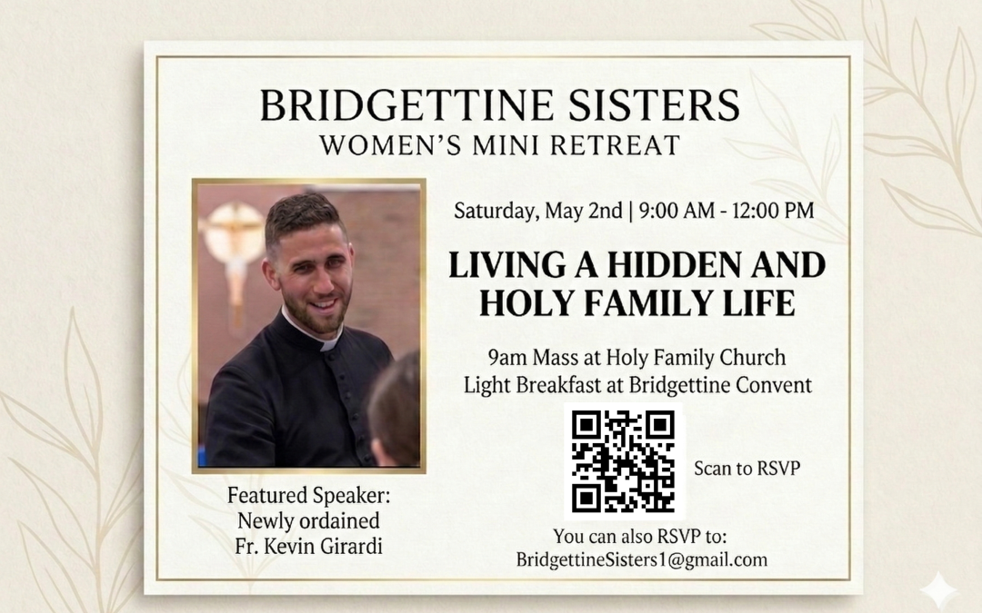 Does the idea of a hidden and holy family life intrigue you? Join us for a peaceful morning of prayer, reflection, and community on May 2nd. We’d love to share this time with you. Newly ordained, Fr. Kevin Girardi will be leading the morning, and it should be beautiful! RSVP today! https://forms.gle/WQEWYikRBv7C8sbC8
